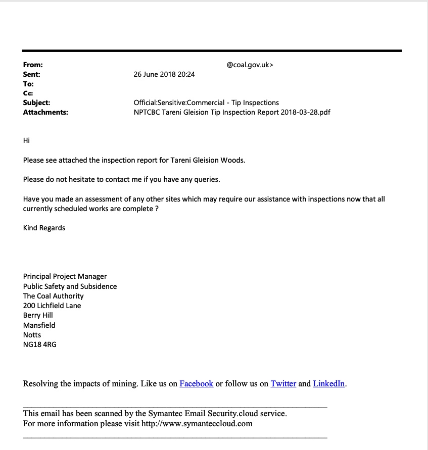 CA email Tip Report (Tareni Gleision) to NPTCBC
