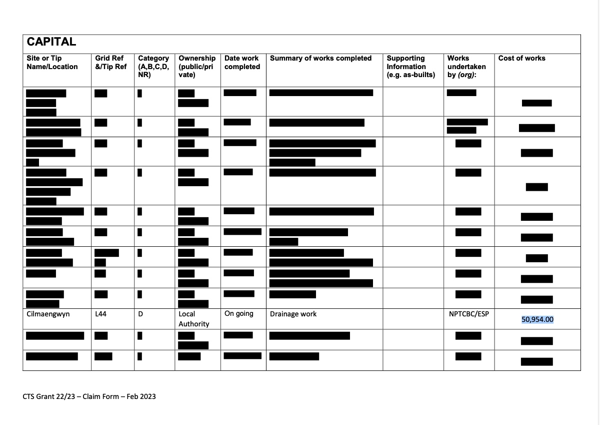 coal tip safety claim, Coal tip Safety Grant, and NPTCBC Engineering