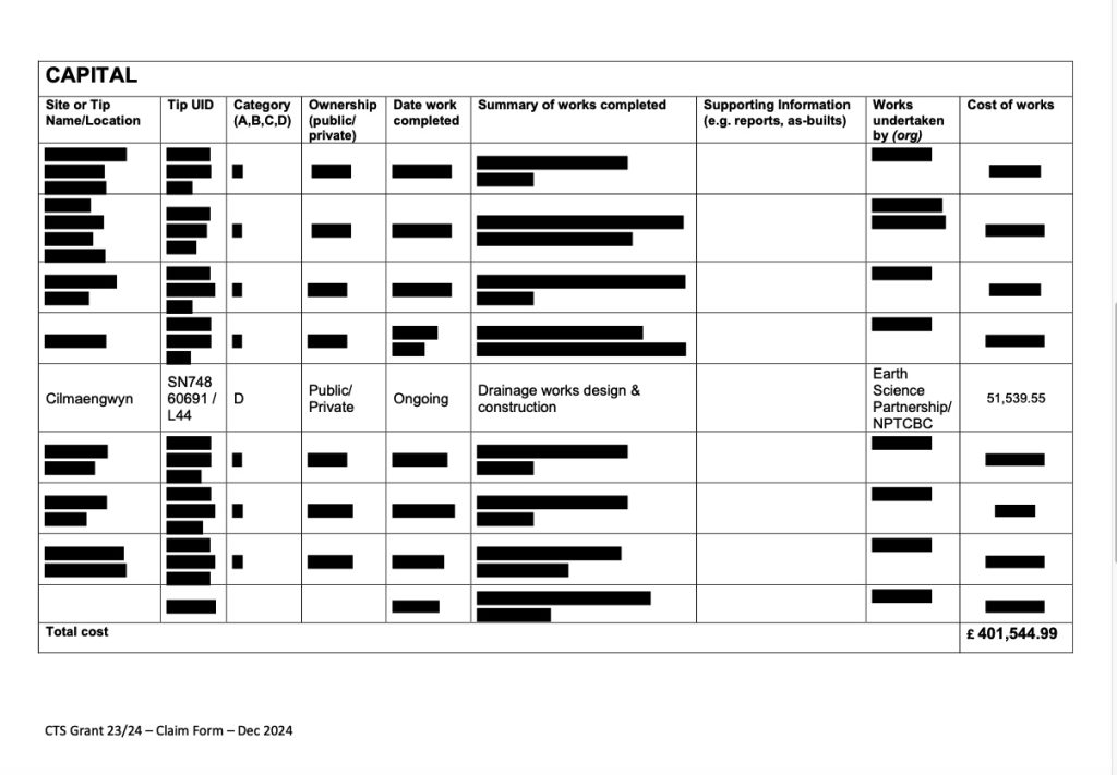 coal tip safety claim, Coal tip Safety Grant, NPTCBC Engineering, and WG - Coal Tip Safety Program