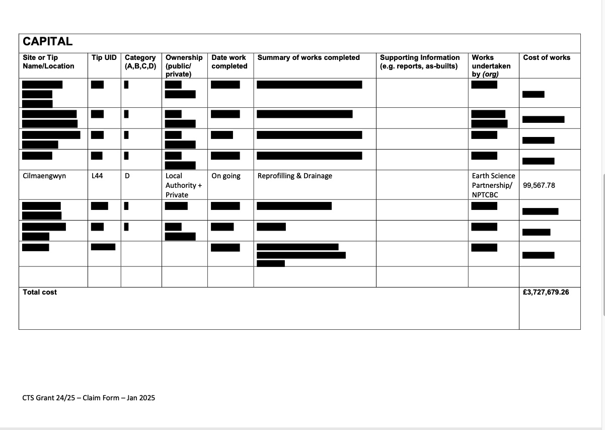 coal tip safety claim, Coal tip Safety Grant, NPTCBC Engineering, and WG - Coal Tip Safety Program