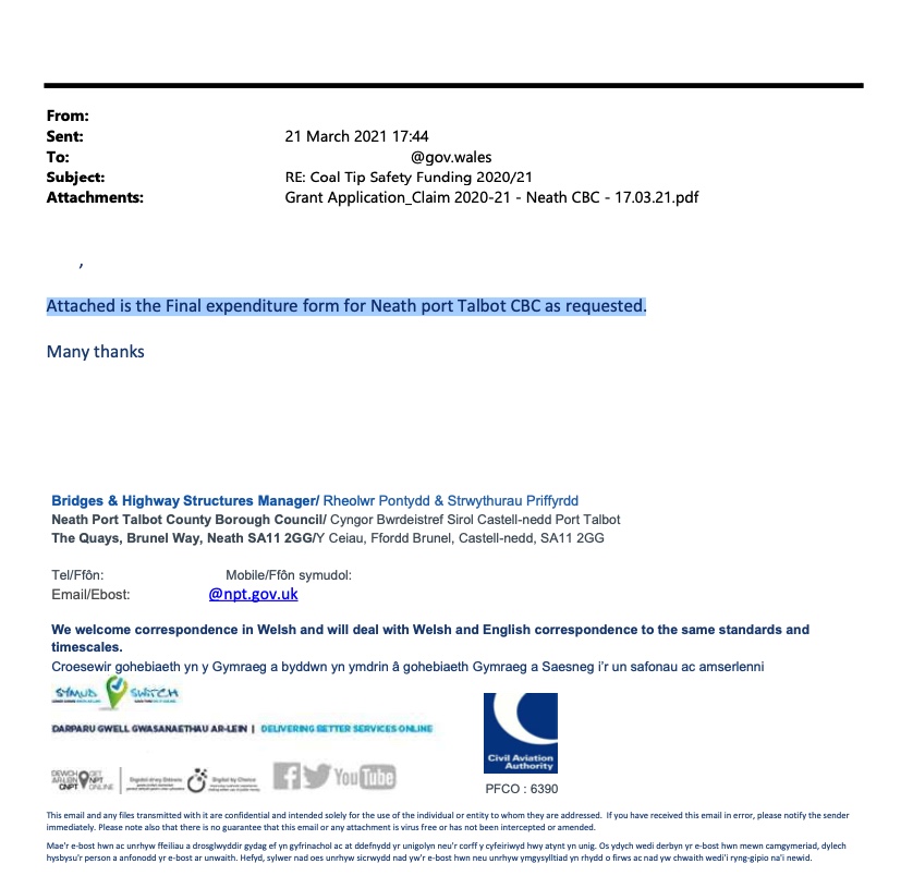 NPTCBC send WG "Attached is the Final expenditure form for Neath port Talbot CBC as requested"