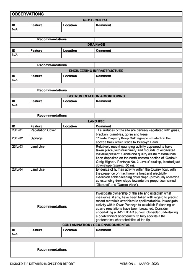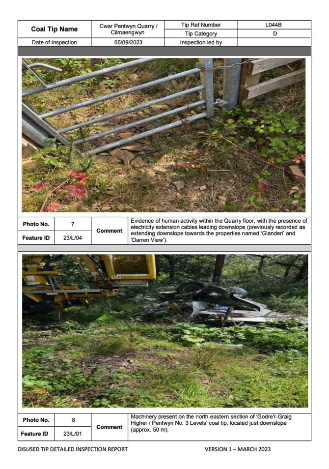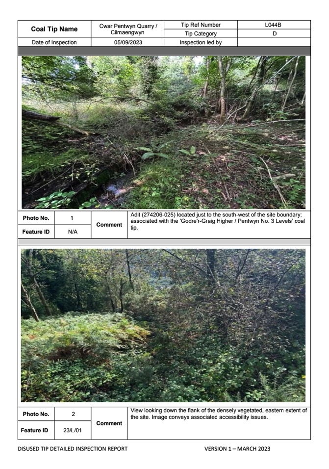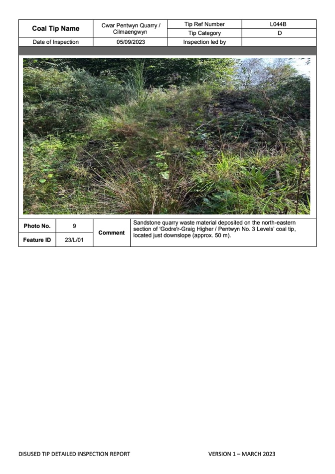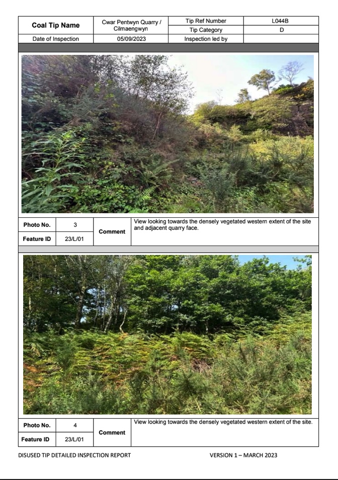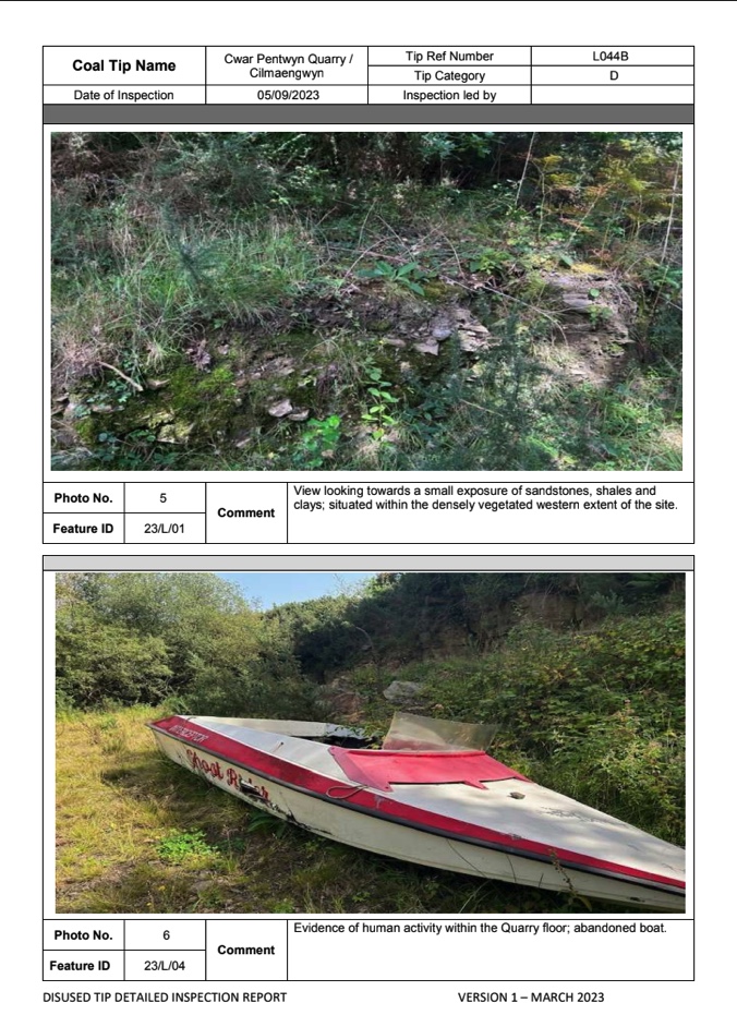 Tip Inspection Cwar Pentwyn Quarry / Cilmaengwyn L44B