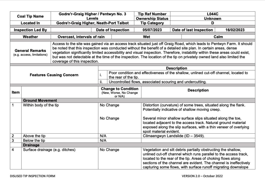 Tip Inspection Godre'r-Graig Higher / Pentwyn No. 3 Levels - L44C